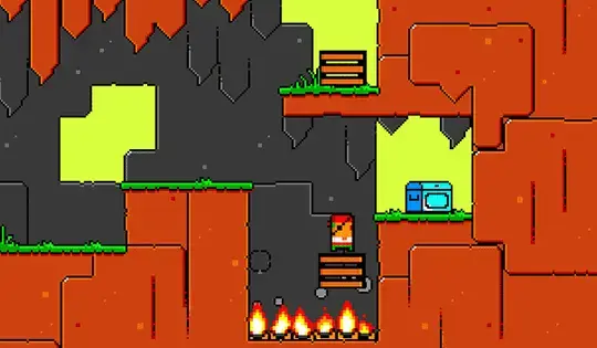 Use the arrow keys or WASD to move and jump. You can push crates, jump on them, or go inside them by pressing DOWN. Grab all the treasure chests to win!