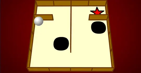 Use the mouse to tilt the playing board (the labyrinth). You need to figure out how to do this so that the ball won't drop through any holes! Your goal is to get the ball to the star.
