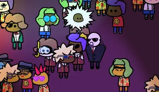 There is a thief in the building! Use WASD to move, and SPACEBAR to interact with people. After a few seconds, you will see an arrow around your feet. It points to someone who has been robbed (you can spot that person by the speech bubble above their head).