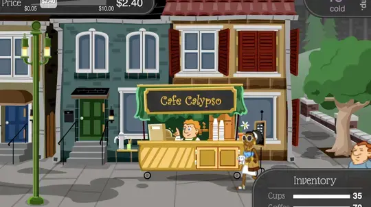 TIP: You can change your coffee price during the day. Keep an eye on what potential customers think as they walk by, and keep an eye on what your customers think right after they taste your coffee. Adjust your price and recipe to maximize profits, but be sure to keep your patrons happy. Customer satisfaction is the top priority in this Coffee Shop game.