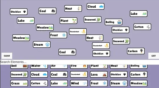 Some recipes require you to merge 3 elements. To do this, place the first two next to each other, but not overlapping. Then place the third element between those two so that it overlaps both of them.
