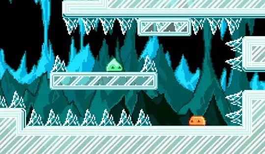 Use the onscreen buttons to move and jump. You can stick to the ice from below by jumping into it. Tap the jump button again to drop off.