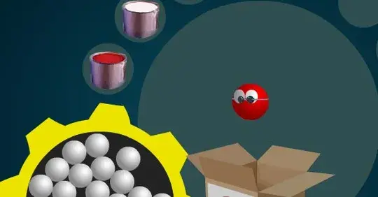 Grab a white ball and drag it to the different circles (buckets of paint, belts, whatever) to match the final ball.