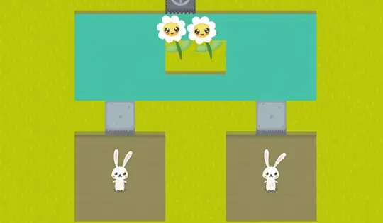 Get water to the flowers, but keep the rabbits dry! Tap on a valve tile to transfer water from one side to the other. Tap on a gray stone tile to pick it up, then tap on an empty brown tile to place it.