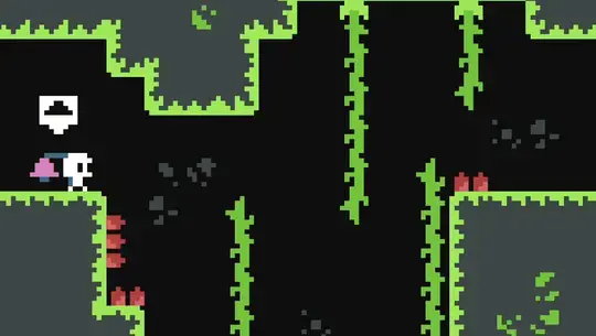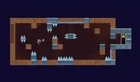 You're trapped in a mysterious cave and the portal you took to get here no longer works! Restore the portal by finding at least one of the red, blue, or green gems to power it up. Walk through the cave with the arrow keys. Stand under a vine and press UP to climb up it. Run into a bell to set a checkpoint there! While you're at it, you'll notice there are 18 coins hidden throughout the cave. Try to collect as many as you can! Don't fall into the spikes along the way.