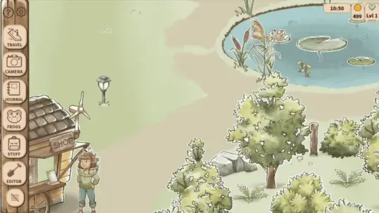 Click on the Travel button to head to the wetlands. Unfortunately, it looks like the wetlands have dried up - so you need to restore them! You can buy ponds and plants in the cabin and then press the Editor tool to place the ponds and bushes in the wetlands. When you want to put a plant in the wetlands, make sure they're next to a body of water or the plants will dry up.