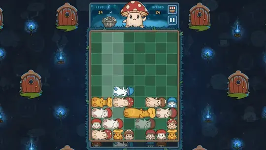 Tap and drag a mushroom to slide it left or right. Your goal is to fill a row so it clears out!