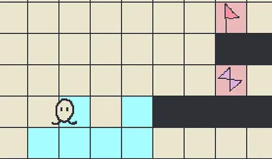 When you pass a blank space in the background, it will change colors. Then run into an hourglass to turn those spaces into solid tiles. Use this power to reach the flag!