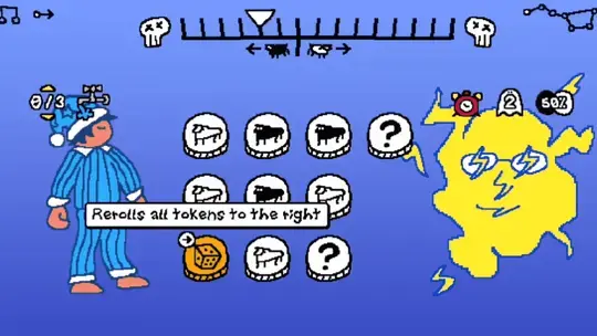 Your goal in each battle is to have more white sheep than black sheep tokens on the board. The more white sheep you have on the board, the more hits the enemy will take as seen on the dream scale at the top of the screen. When the arrow reaches the end of the scale to the right, you'll win! But if the arrow reaches to the left, you'll lose!