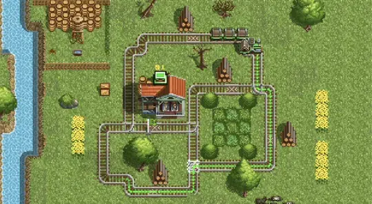 Guide the trains to pick up and deliver cargo! Click on an intersection to change the direction of the tracks. Trains can only pick up cargo of their color, and deliver it to the flag of the same color. You can give either train a speed boost by clicking directly on it. Just be careful not to go too fast or your trains might collide!
