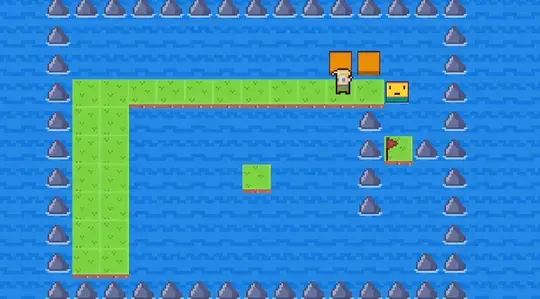 The robot can move on land with or without any blocks, but it needs blocks to move on water. It can also pick up blocks by moving back over them.