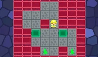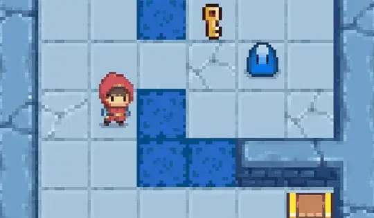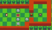 Use WASD to move to the treasure chest. You can push blocks into the water to create a path. Watch out for slimes, they will move toward you whenever you are standing straight across from them. Don't let them touch you!