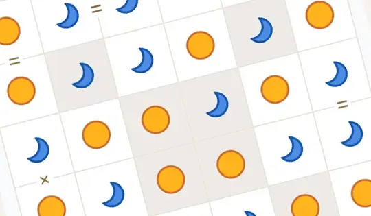 You cannot place three moon or sun symbols next to each other in a row, horizontally or vertically. (Diagonally is OK). This is a pretty simple rule to follow, yet it’s probably the most important game mechanic that you’ll need to look out for.
