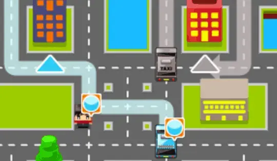 Your goal is to bring all of the passengers to their destination. Click on a car and drag to draw a path. Once you're happy with your path, press the play button at the bottom of the screen to start moving the taxis.