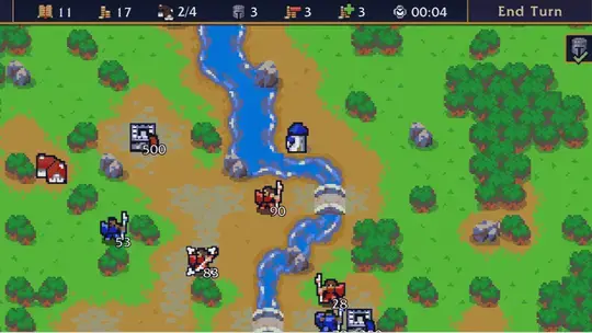 In each level, you will start with a small set of fighters each with different skillsets. You can hover over each of your fighters to see what class they are and what abilities they have. To move your unit, click on them and you'll see blue squares appear that will show you where you can move them. Click on the blue square you want to move them to and once they have finished moving, click End Turn.