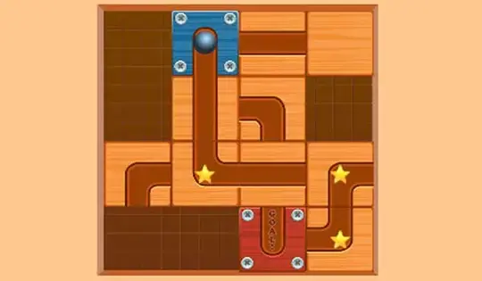 Click and drag a tile to slide it. Connect the path from the ball to the goal. For a tougher challenge try to get all three stars.