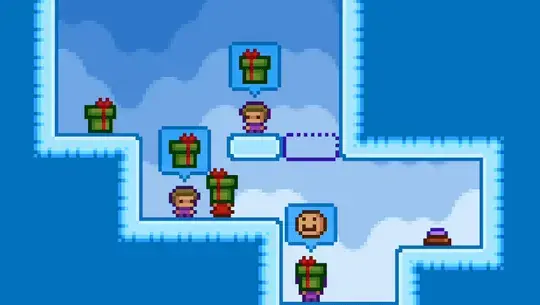 Tap the on-screen arrows to move. Your goal is to bring one present to each child.