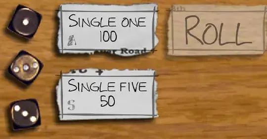 On your turn, click ROLL to roll the dice. If you rolled some scoring dice, take some points and add them to the bank. Then, decide whether to bank your points or roll again.