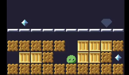 Tippen Sie auf die Stelle, an die Sie möchten, und der Klecks wird Ihnen folgen! Schnapp dir alle kleinen Edelsteine, um den großen Diamanten zu bekommen. Sie können in Ecken hoch und runter springen, direkt nach oben können Sie jedoch nur springen, wenn sich über Ihnen eine schmale Plattform befindet. Schieben Sie Kisten durch das Level, um sich mitzunehmen.