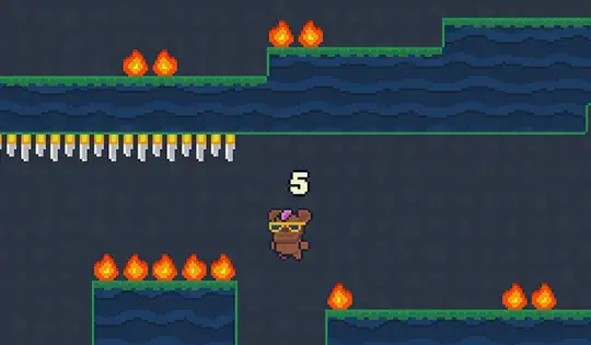 Appuyez sur Gauche ou Droite pour commencer à courir dans cette direction. Appuyez sur Haut pour sauter. Chaque fois que vous appuyez sur une touche, cela coûte un coup. Essayez d'atteindre la ruche avant de manquer de mouvements, cela vous donnera un point de contrôle. Continuez à explorer les grottes pour trouver plus de ruches et de nouveaux pouvoirs !