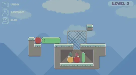 Votre but est de nourrir les bébés vers ! Pour ce faire, vous devez pousser les fruits dans le trou afin qu'ils puissent manger. Vous pouvez grimper le long des grilles pour vous aider à atteindre des fruits élevés.