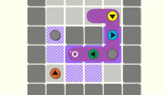 Utilisez les touches fléchées pour vous déplacer et remplir la zone ombrée. Vous ne pouvez utiliser que les instructions à l'intérieur de votre serpent, alors assurez-vous de les manger dans le bon ordre.