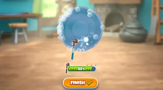 Après avoir terminé chaque niveau, vous retournerez au village pour nettoyer une maison. Tapotez sur l'éponge et essuyez-la partout dans la maison pour la nettoyer. Une fois que vous avez terminé, appuyez sur le cercle vert avec un point d'exclamation pour recevoir un cadeau ! Vous pouvez utiliser ce cadeau pour décorer votre maison en appuyant sur "Votre maison" et en plaçant les nouveaux meubles.