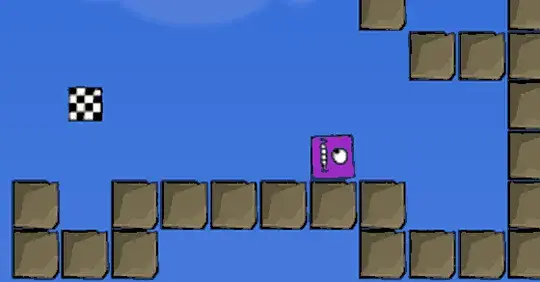 Votre objectif est d'amener les Blobs sur la case "arrivée" à carreaux. Pour ce faire, faites pivoter l'écran. Celui-ci devient assez difficile assez rapidement!