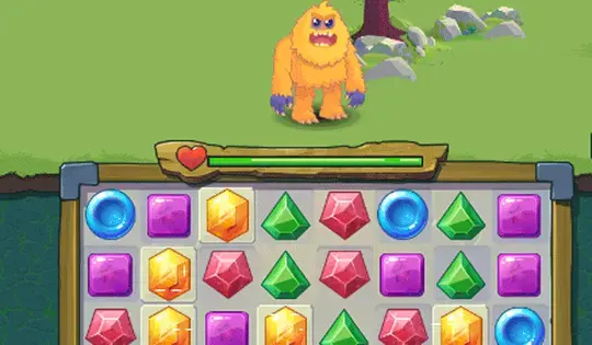 एक राक्षस का सामना करते समय, उनके सिर के ऊपर एक संख्या दिखाई देगी जो दर्शाती है कि उन्हें हराने के लिए कितने गहनों की आवश्यकता है। ग्रिड पर हाइलाइट किए गए रत्न वे हैं जिनकी आपको मिलान करने की आवश्यकता है। एक ही रंग के कम से कम तीन रत्नों का मिलान करने के लिए गहना को लंबवत या क्षैतिज रूप से क्लिक करें और खींचें।