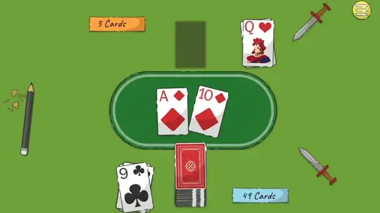 आपको और आपके प्रतिद्वंद्वी को 26 कार्ड मिलेंगे। आप हर बार एक कार्ड निकालेंगे और जिसके पास सबसे बड़ा कार्ड होगा, वह दोनों कार्ड ले लेगा! अपने कार्ड पर टैप करके उसे निकाल लें।