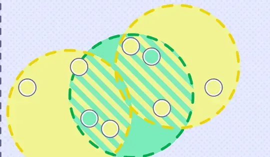 同じ色の丸が2つ重なると、共有エリアが空白になります。 2 つの異なる色の円が重なった場合、共有領域はどちらかの色としてカウントされます。
