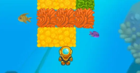 Toque em um bloco de coral para remover todos os corais conectados dessa cor. Ajude o mergulhador a chegar à superfície!