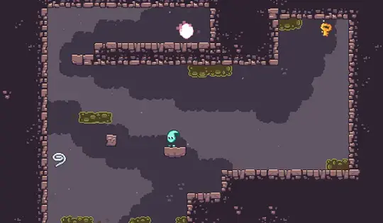 Use a força do vento para flutuar e a força da rocha para deixar cair uma pedra debaixo de você. Você pode pular em cima da rocha para alcançar plataformas mais altas. Às vezes, você precisará usar os poderes mais de uma vez para chegar ao portal!
