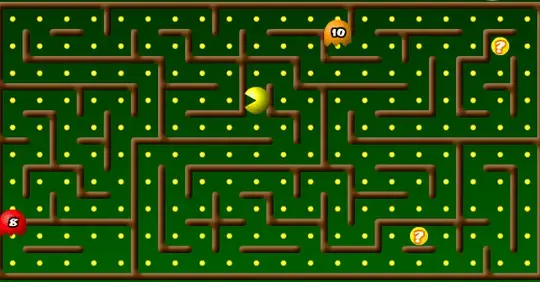 Observe os fantasmas. Os fantasmas o seguirão pelo tabuleiro. Quando você come um “?” ponto, você terá vantagem sobre um fantasma, mas certifique-se de ficar de olho nos outros enquanto se move para não ficar preso!
