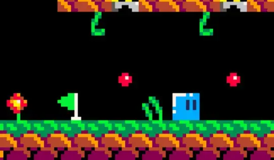 Use as setas para mover. Pressione X ou C para pular. Caminhe sobre as bandeiras para ativar os postos de controle.