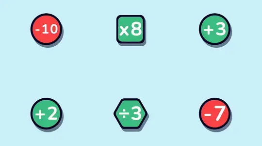 Toque e arraste um círculo para outro círculo. Eles combinarão seus valores e formarão um novo círculo. Se somarem 0, desaparecerão. Por exemplo, se você combinar -6 com X2, obterá um círculo com -12 como valor.