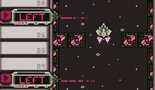 Faça sua nave cruzar a linha de chegada sem bater. A tela é dividida em duas partes: a linha do tempo à esquerda e a rota de vôo à direita. Na linha do tempo, clique na seta ao lado de um comando para alterá-lo e arraste para movê-lo para cima ou para baixo. Quando estiver pronto, pressione GO e a espaçonave executará os comandos na linha do tempo.