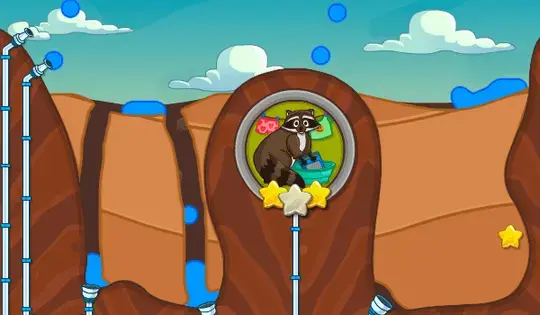 单击并拖动以创建一个让水流过的隧道。引导它穿过星星收集它们,然后进入管道将它送到浣熊。将足够的水倒入浣熊的桶中,这样它就可以洗完衣服。