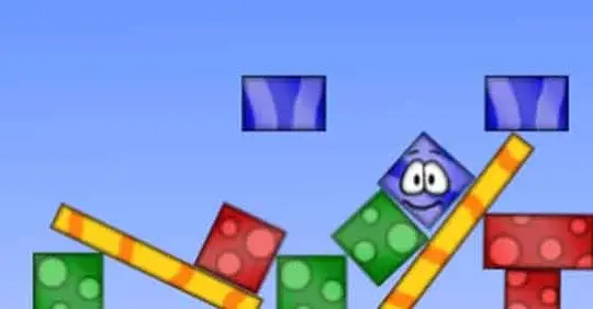 将两个蓝色块连接在一起以移动到下一个级别。点击或单击其他对象以将其删除。
