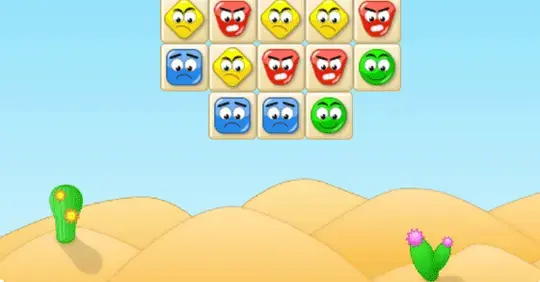 您的目标是删除右侧列出的彩色面孔数量。要删除面孔,请将它们分成三个或三个以上的组。单击彼此相邻的面以切换它们并形成匹配组。