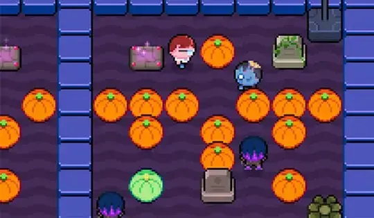 使用箭头键移动。当你站在南瓜附近时,按空格键推动南瓜。将南瓜推入僵尸以摧毁它。当橙色南瓜靠近墙壁时,您也可以通过推动它们来破坏它们。