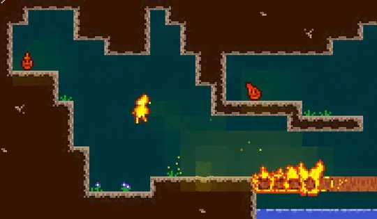通过触摸障碍物或投掷火球来烧毁障碍物。通过触摸它们来拯救火灵。每次你发射一个火球,你就会收缩。请记住这一点以击败某些级别!小心不要掉入水中。
