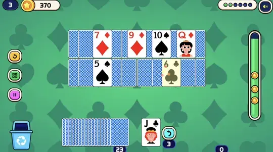 您从一副牌开始,其中一张牌面朝上。你的目标是在牌组清空之前清空棋盘!为此,您需要将两张总点数为 13 的牌组合起来。点击第一张卡片,然后点击第二张卡片将其移除。如果可用的卡片加起来最多不能达到 13,请轻按卡片堆以抽出一张新的正面朝上的卡片。