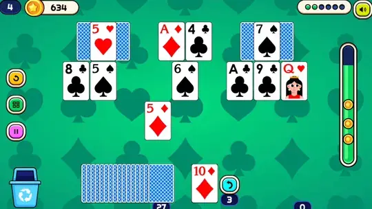 您从一副牌开始,其中一张牌面朝上。您的目标是在牌组清空之前清除棋盘上的所有牌!您可以清除比正面朝上的卡高或低一个值的卡。 A 可以算作高位或低位!